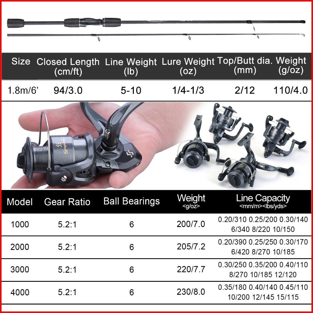 Set Pancing 1.8m Carbon Fiber Joran Reel Pancing Metal Spool 5.2 1 1000-4000 Set Max Darg 10kg
