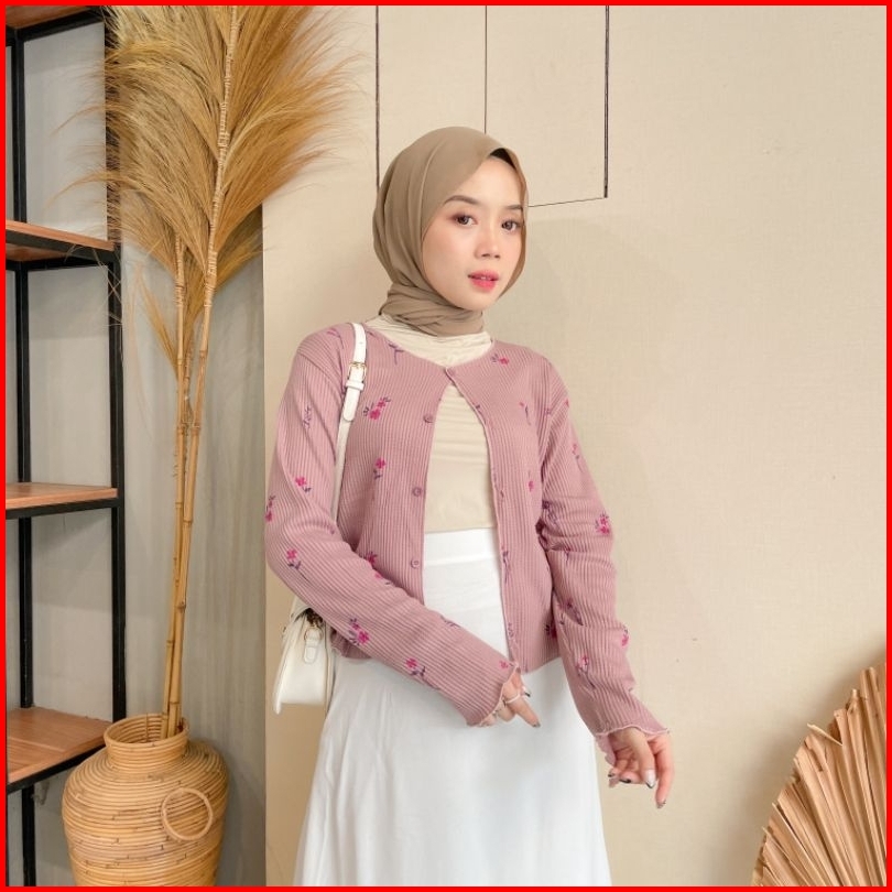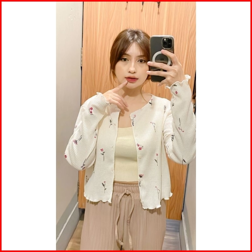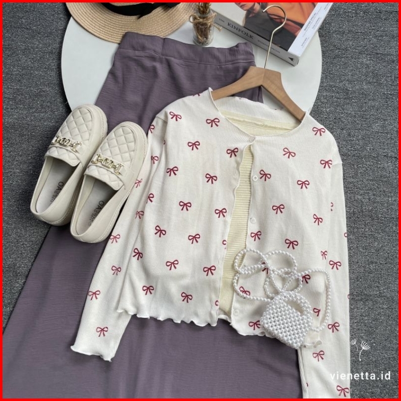 Vienetta.id - One Set Korean Style Setelan Wanita Cewek Remaja Baju Atasan Cardi Bunga Lucu Rok Polos Buat Healing Pikni