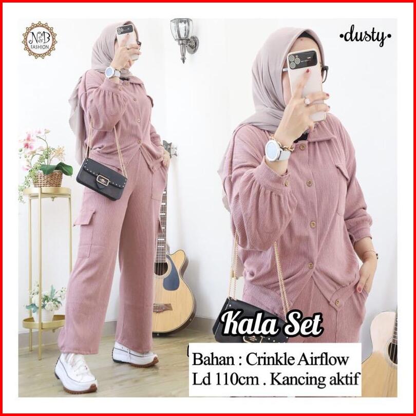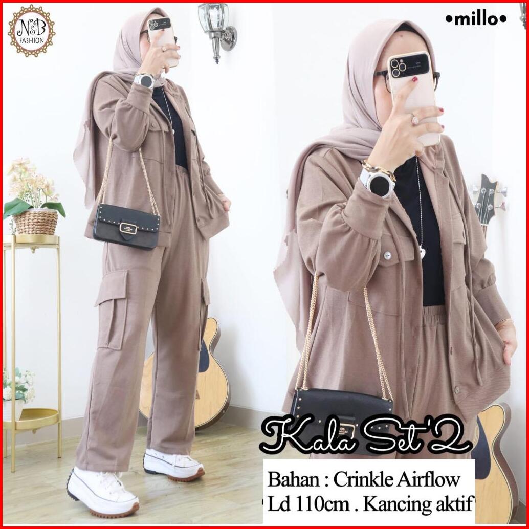 Kala Set Cardigan Celana Cargo Jumbo Ld 110-120 Crinkle Airflow Setelan Kala One Set Polos Cardigan Setcel Cardgigan Car