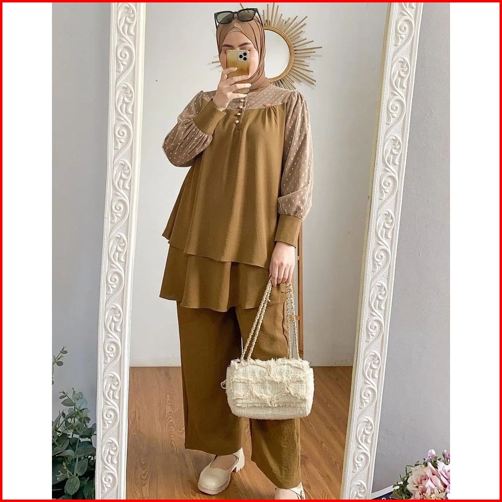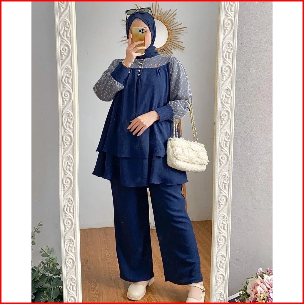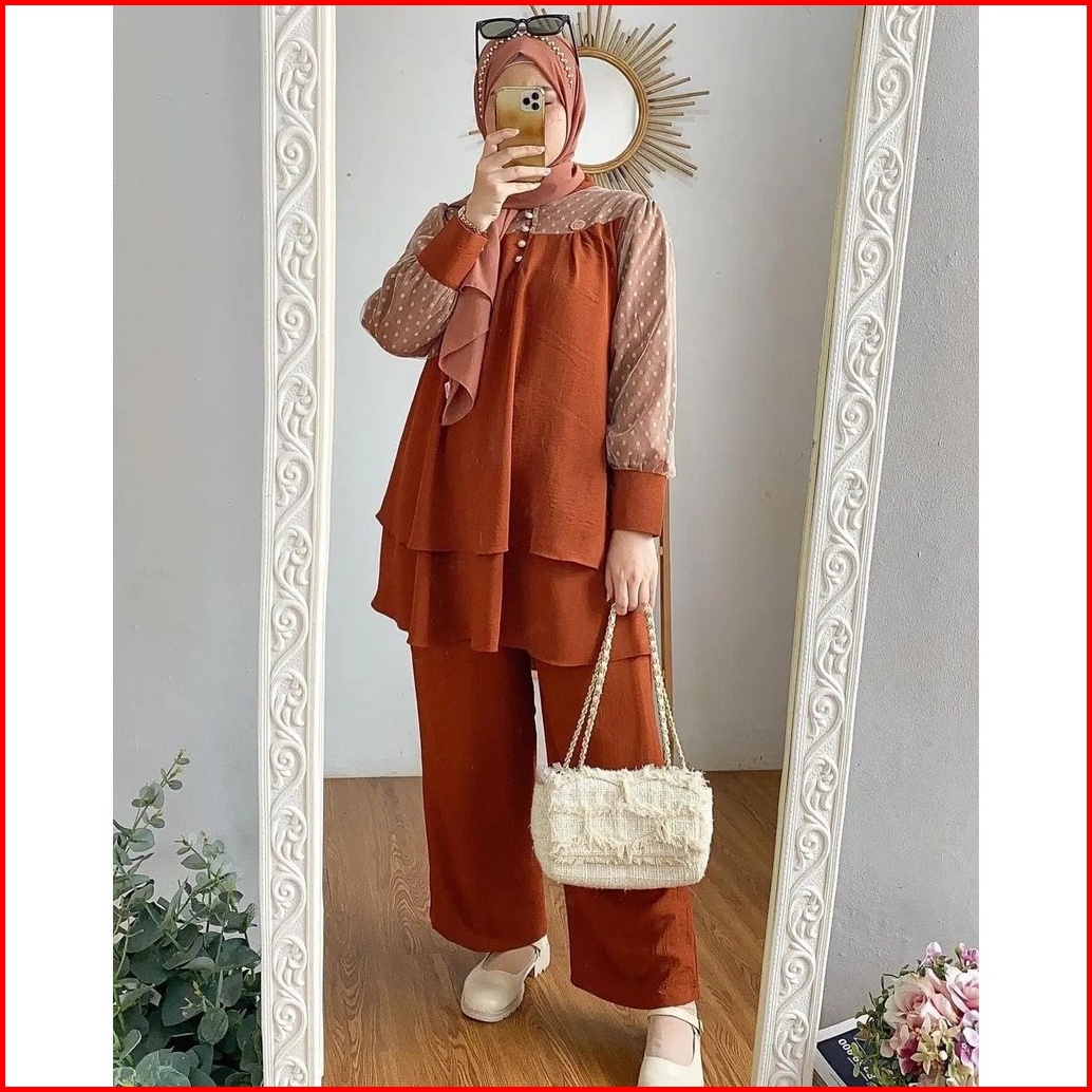 Hanna Set Setelan Wanita Bahan Crinkle Mix Tiledot Terbaru Atasan Celana Fashion Kekinian Murah Mf