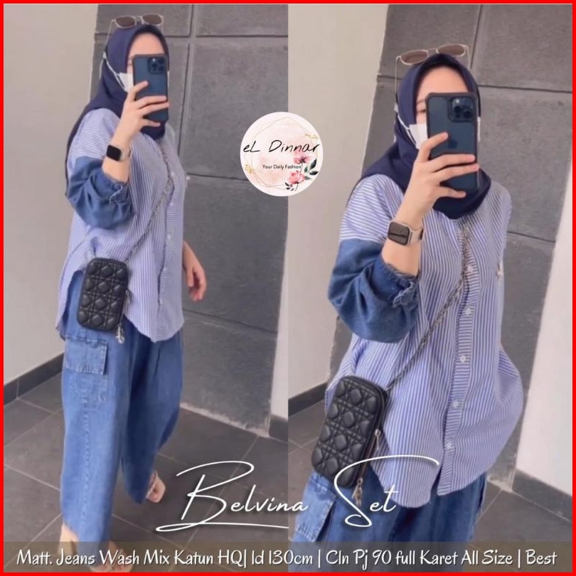 Ready Belvina Set Jeans Setelan Celana Jeans Wanita Sporty