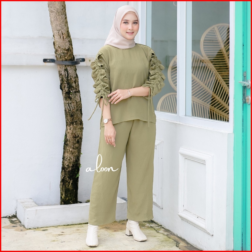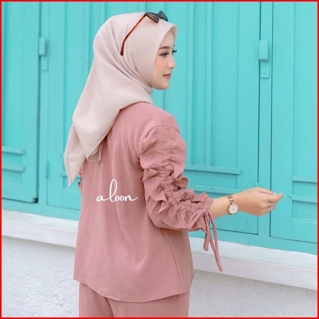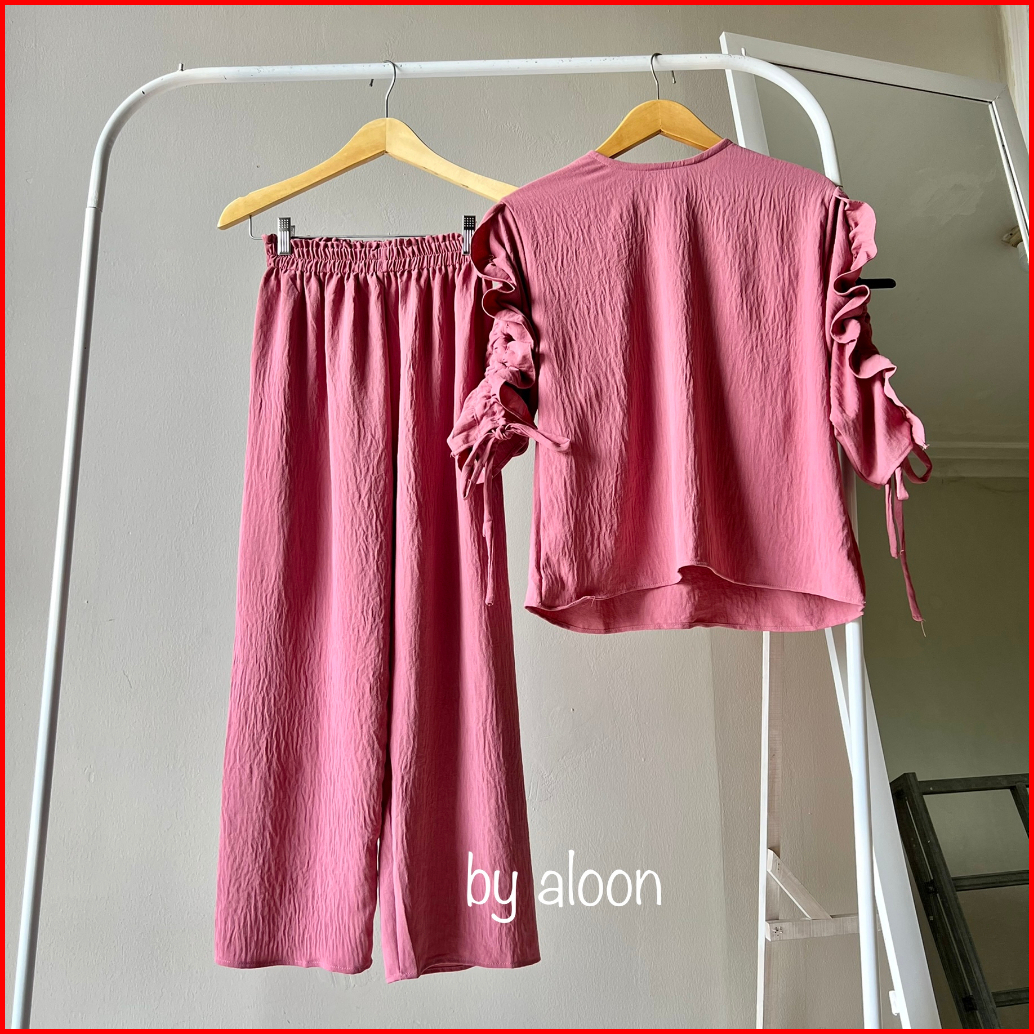 Sherly One Set Crinkle Airflow Stelan Wanita Kekinian One Set Wanita Korean Style