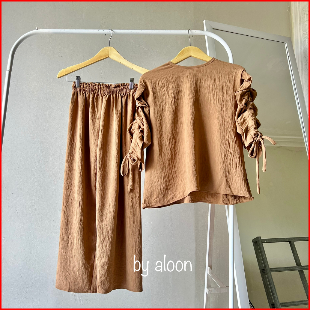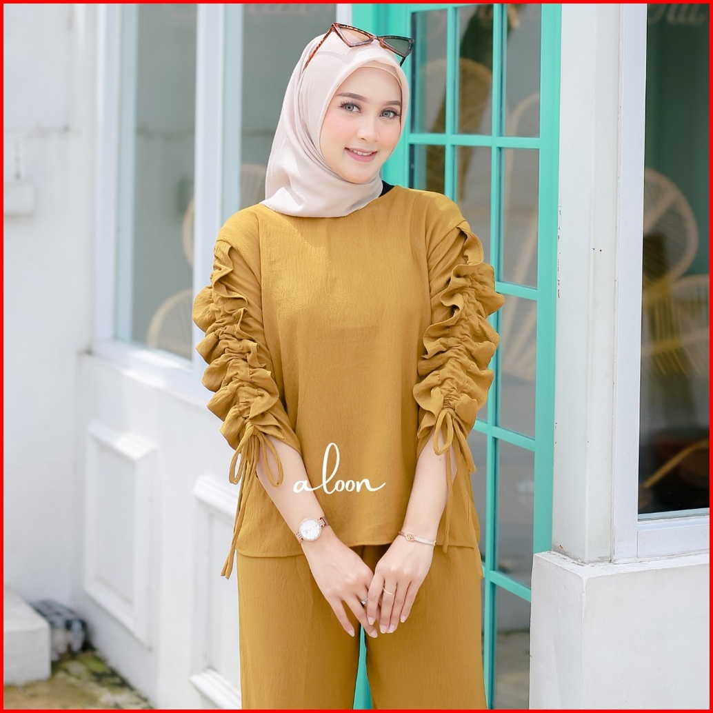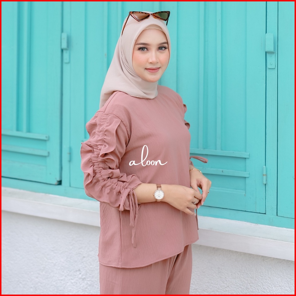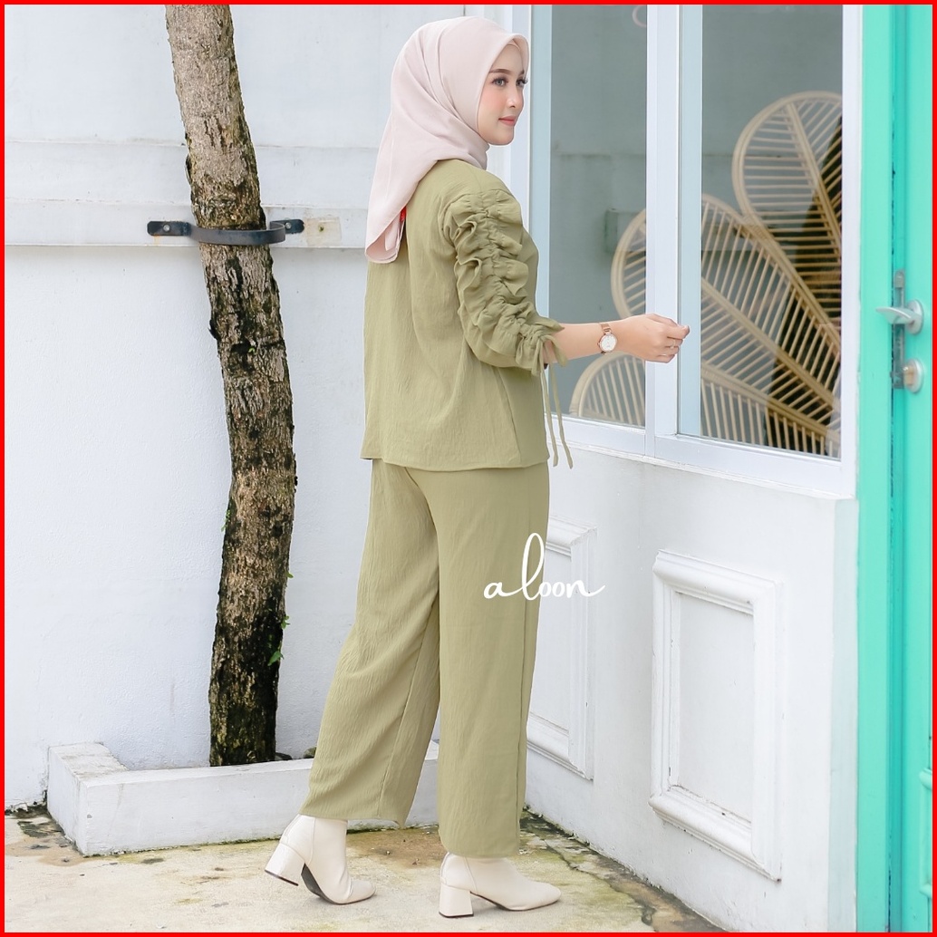 Sherly One Set Crinkle Airflow Stelan Wanita Kekinian One Set Wanita Korean Style