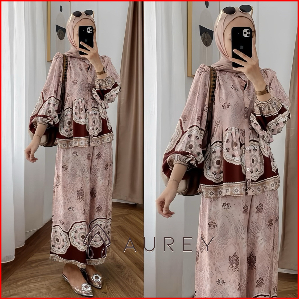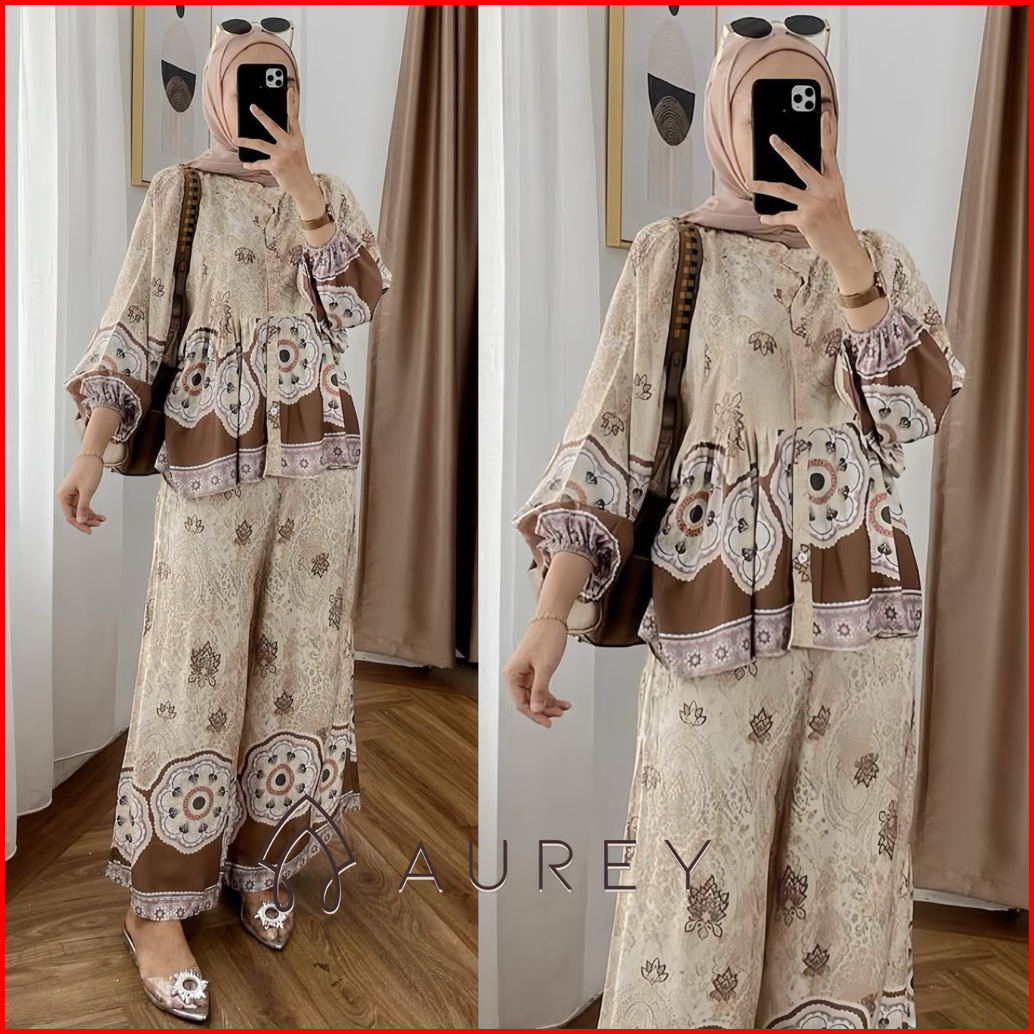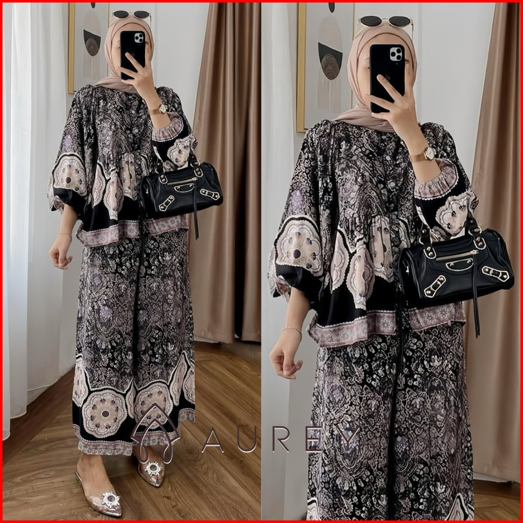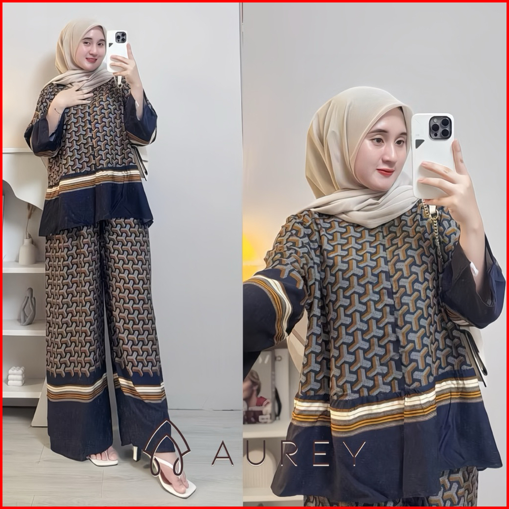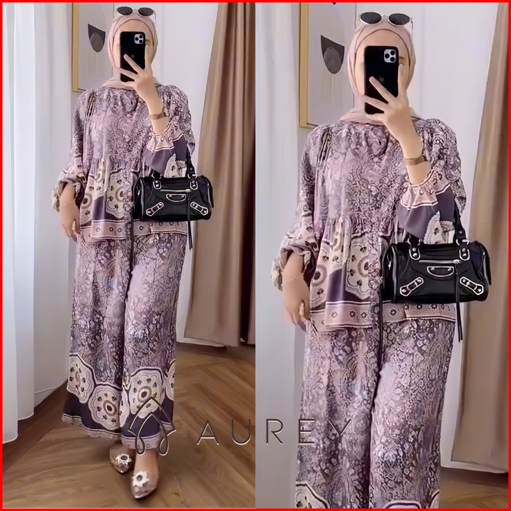 Aurey Oneset Wanita Monica Setelan Wanita Setelan Tunik Dan Celana Wanita Set Rayon Motif Kekinian Oneset Viral