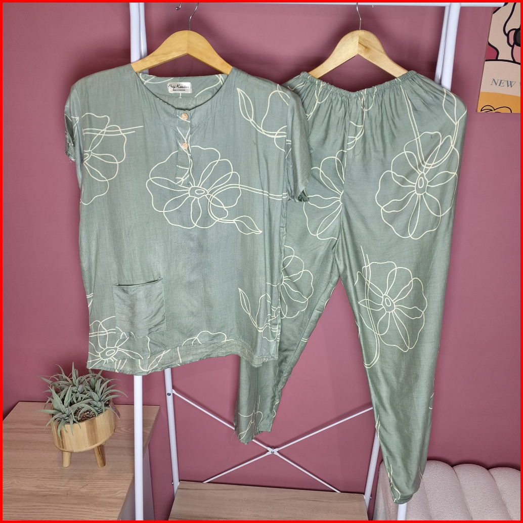 Setelan Baju Tidur Piyama Wanita Celana Panjang Motif Lini Bumil Busui Friendly Kancing Aktif Bajunya Emak No 23