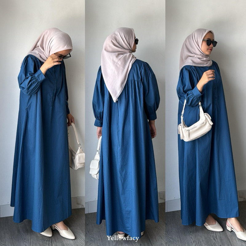 OLIVERA POPLIN DRESS BY YELLOWFACY GAMIS WANITA KATUN KANCING BOBOK BELT