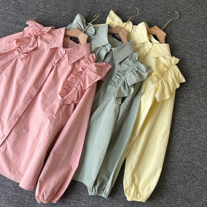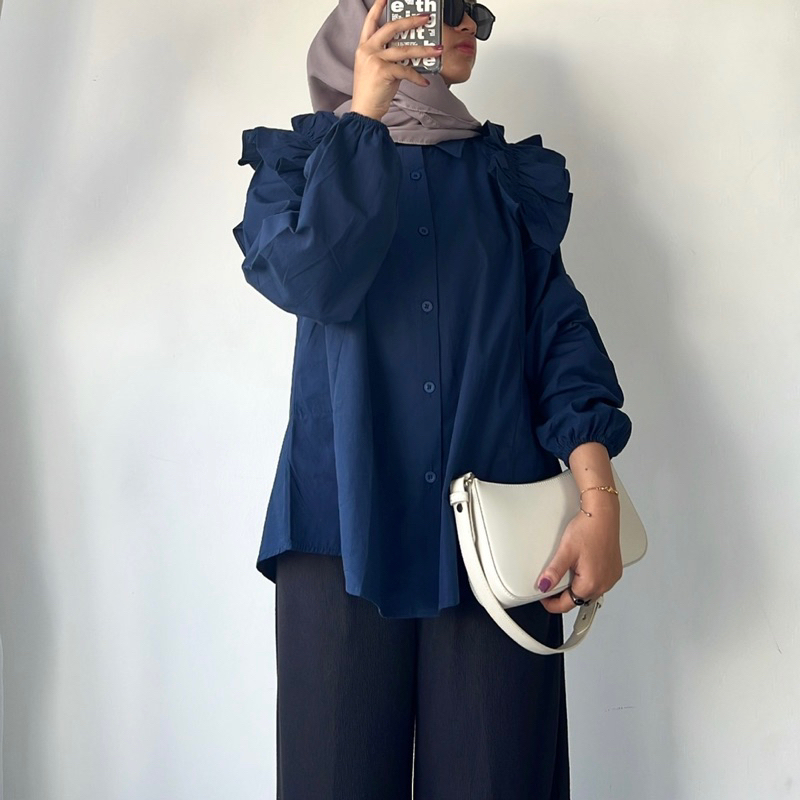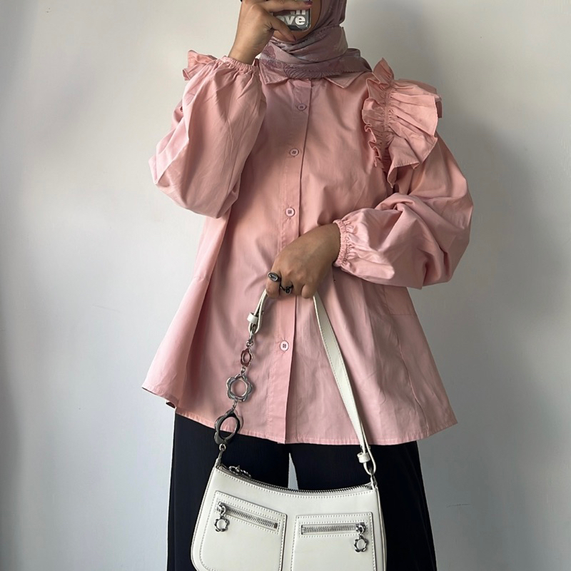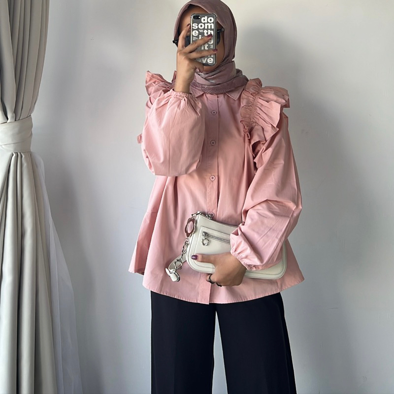 LUWI POPLIN SHIRT BY YELLOWFACY BLOUSE RUFFLE LENGAN