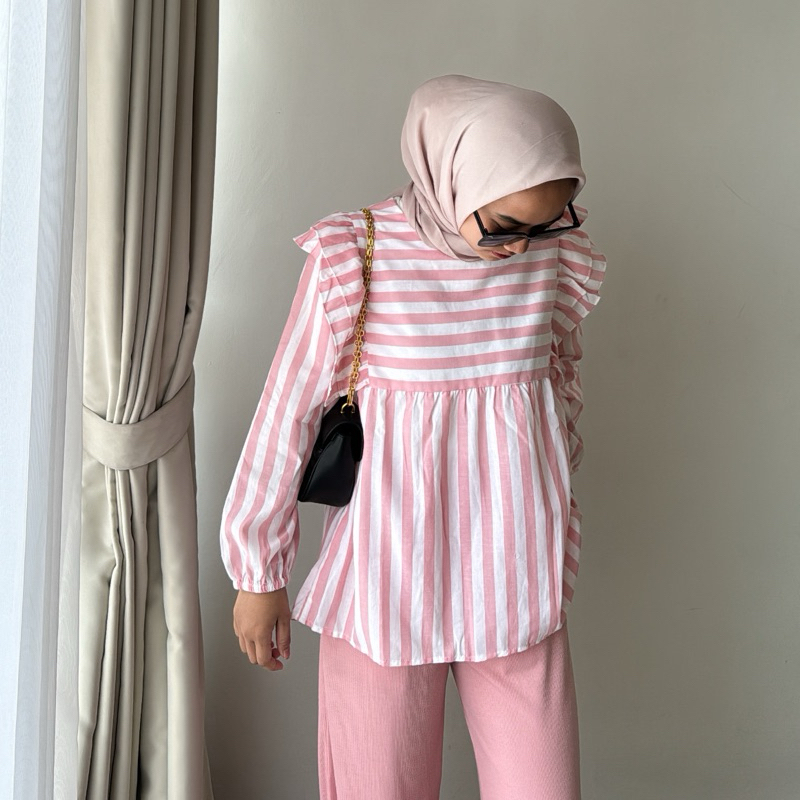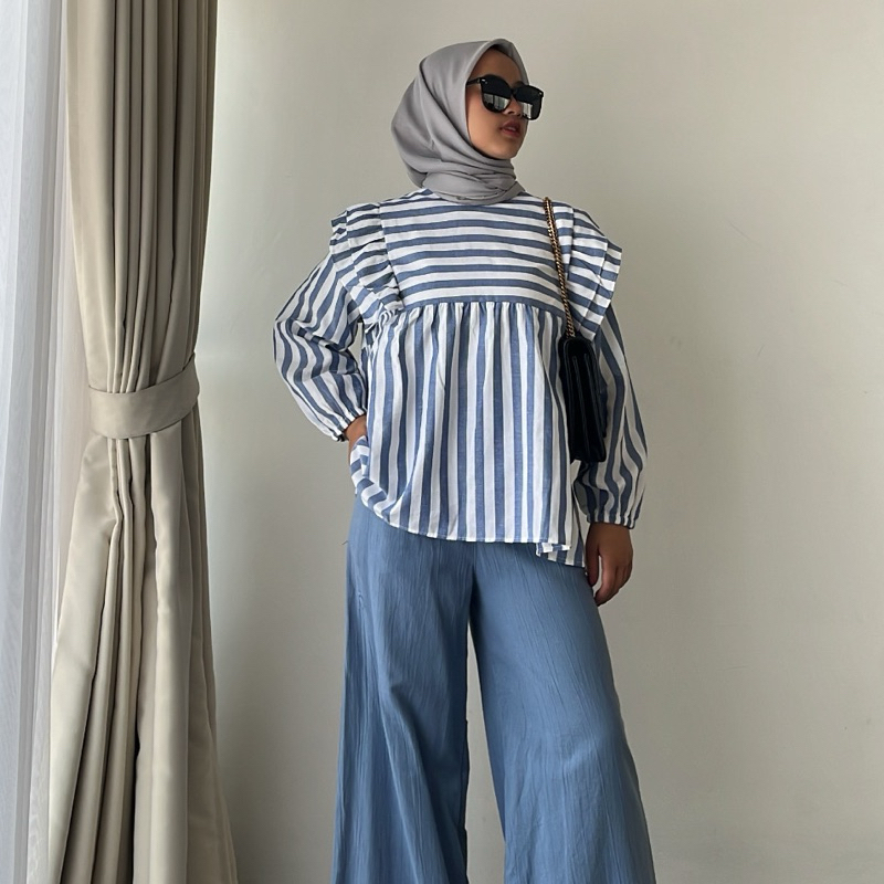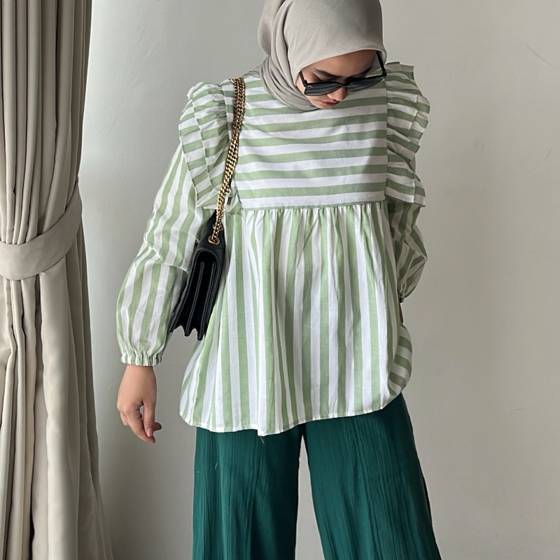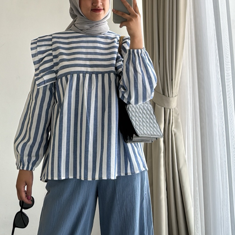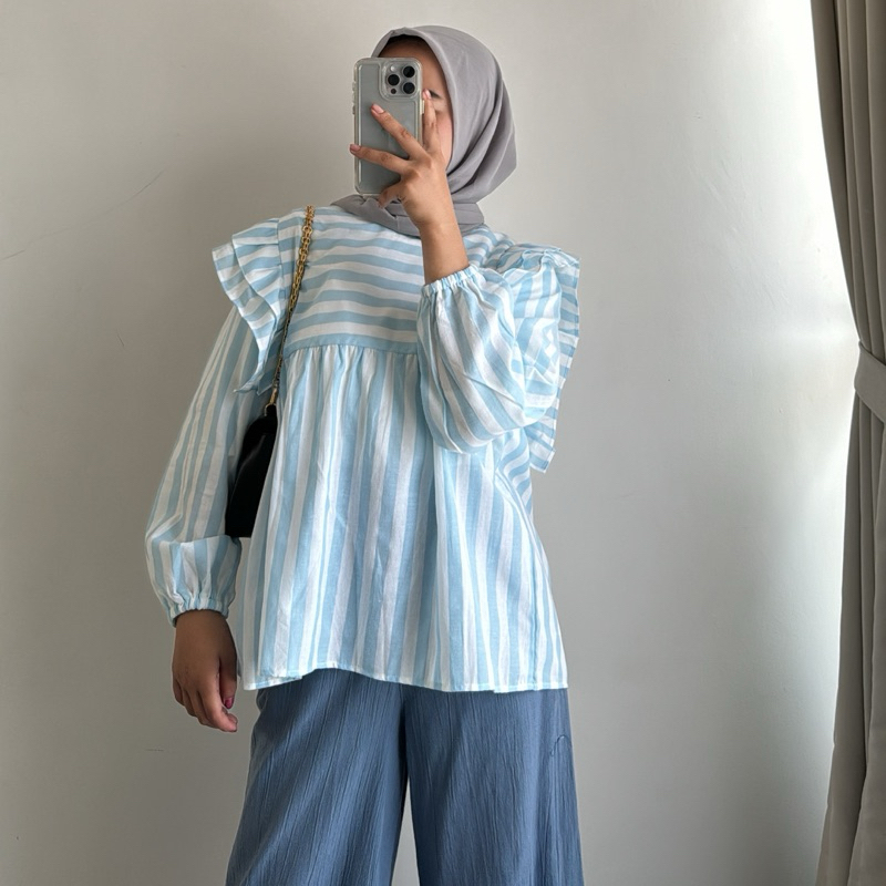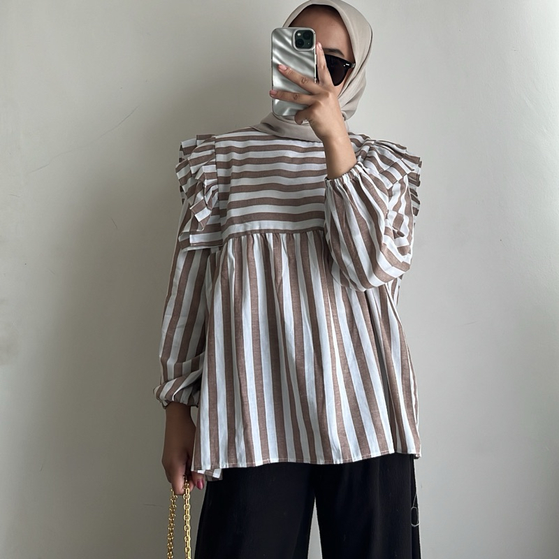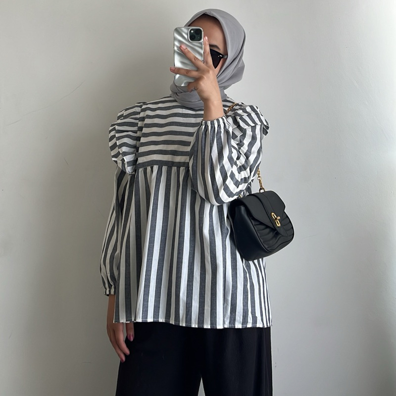 POWY STRIPED BLOUSE BY YELLOWFACY ATASAN WANITA GARIS