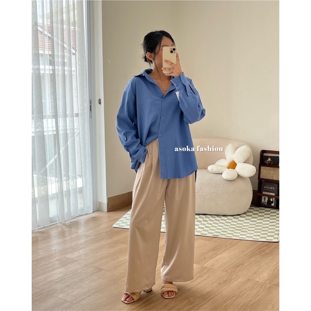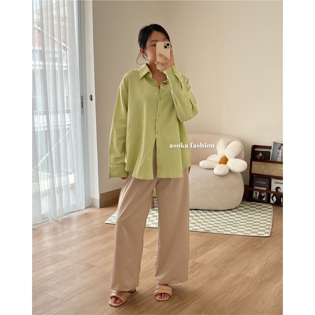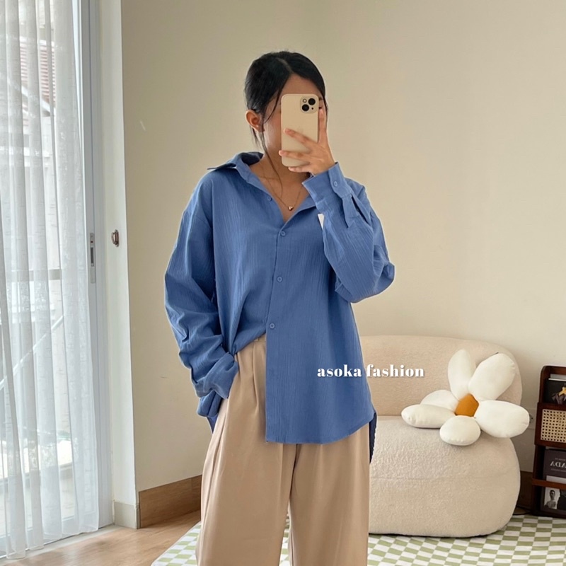 SUKI SHIRT 2022 - KEMEJA CRINKLE BASIC OVERSIZE ATASAN WANITA - BUMIL FRIENDLY