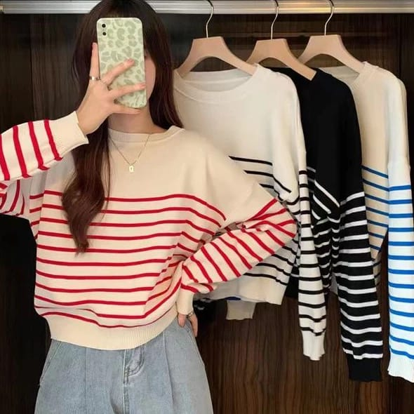 BASIC STRIPES SWEATER SWEATER ONECK BLASTER T0P KNIT LENGAN PANJANG