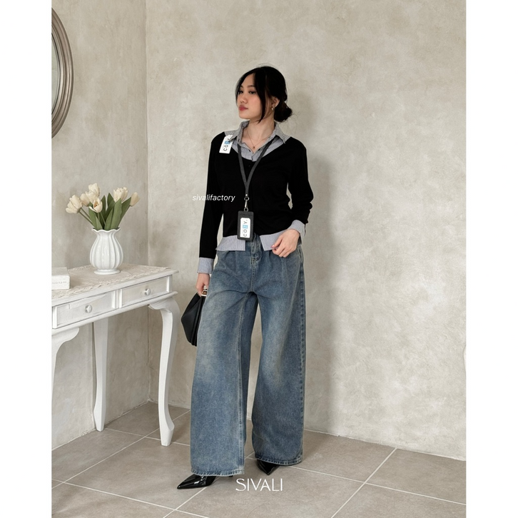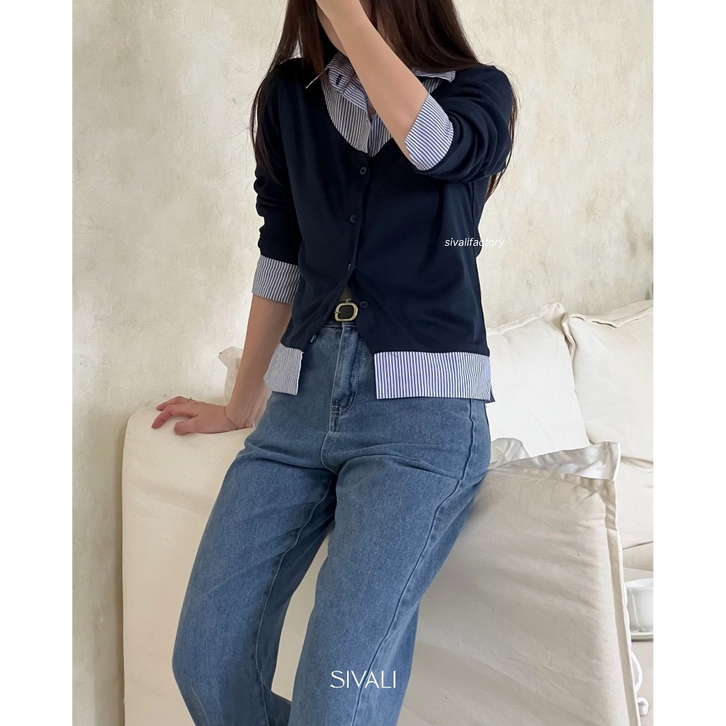 Kemeja Wanita Salur Layer Cardigan Stripe Layer Shirt Terbaru