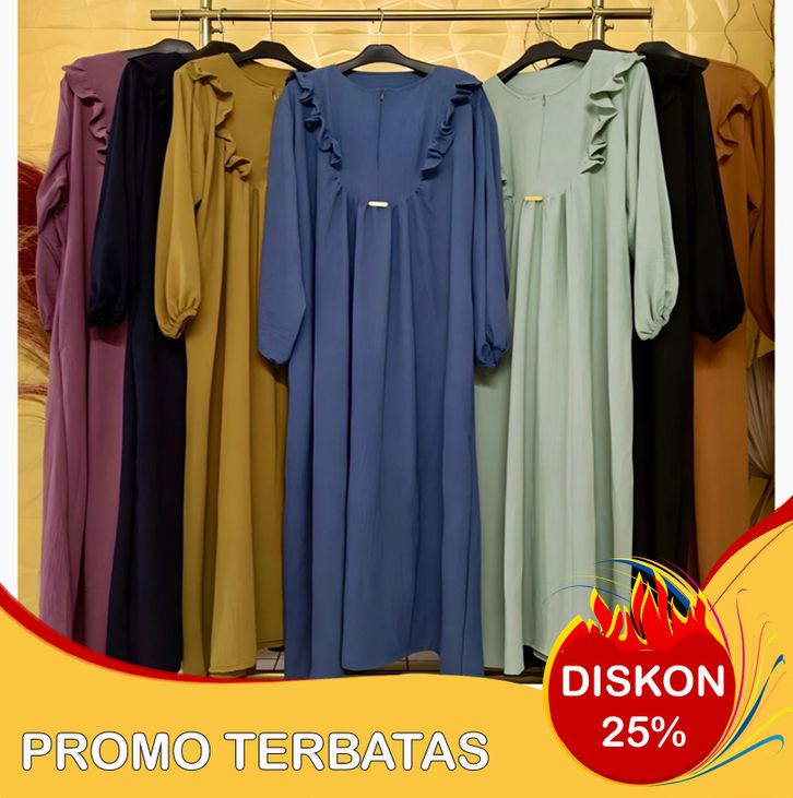 BARU SALSA DRESS GAMIS DEWASA POLOS SIMPLE BAHAN CRINKLE AIRFLOW BUSUI RESLETING LD 110-130