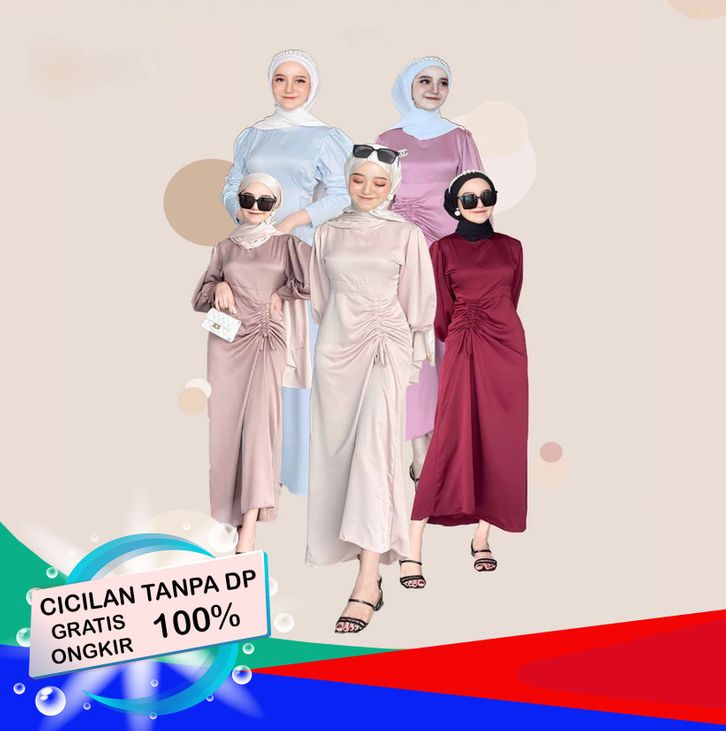 BARU ABELIA DRESS - BAJU GAMIS DEWASA BAHAN SATEEN VELVET ADEM UNTUK HIJAB DAN NON HIJAB