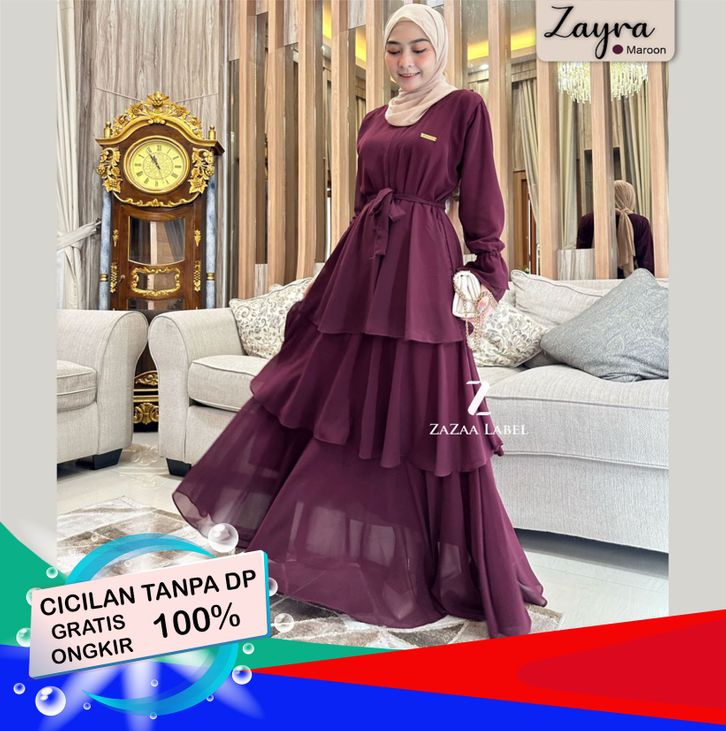 BARU ZAZAA LABEL - ZAYRA MAXI DRESS WANITA MUSLIM CERUTY BABYDOLL FULL FURING MEWAH BUSUI (GAMIS ONLY) NON JILBAB