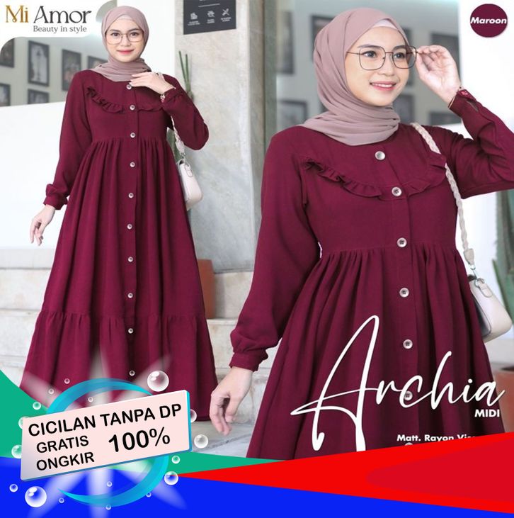 BARU 𝐏𝐆𝐌𝐓 • GAMIS MAXY ARCHIA CRINKLE AIRFLOW PREMIUM WANITA MUSLIMAH KANCING FULL HIDUP