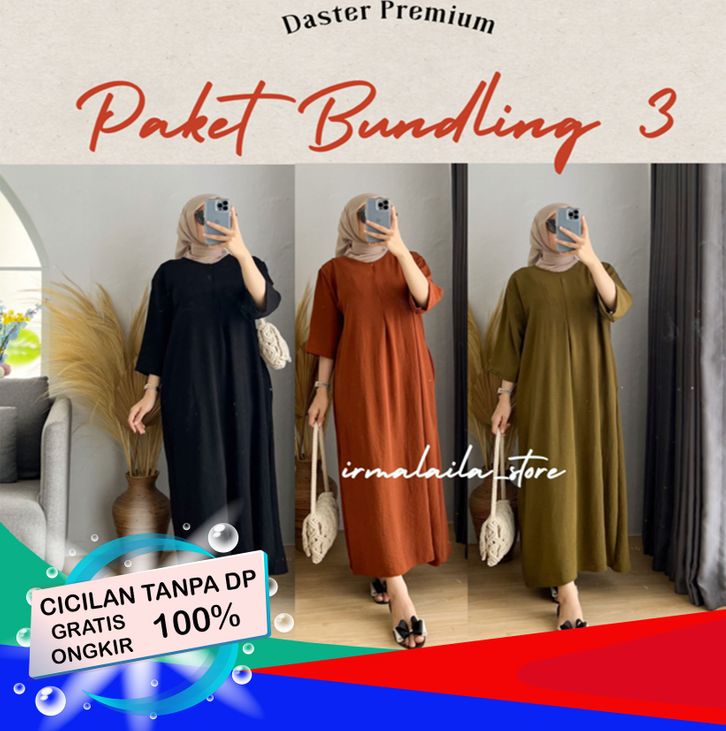 BARU PAKET 3 PCS GAMIS WANITA DEWASA CRINCLE TANGAN 3/4