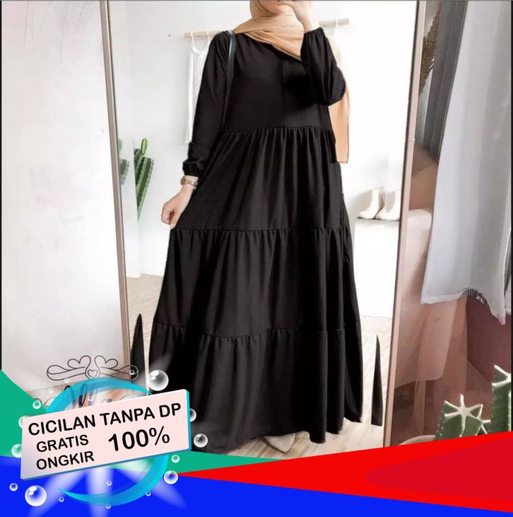BARU GAMIS POLOS REMPEL SUSUN BAHAN CRINKLE AIFLOW / GAMIS DEWASA TERBARU / DRESS TERBARU