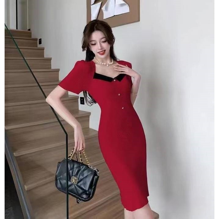 Dress Wanita Korean Style Fit Body Dress Rajut Import Premium Elegan dan Mewah