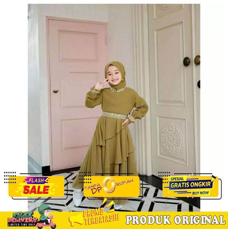 BONUS C.P - MIKAYLA KIDS GAMIS ANAK USIA 5-13 TAHUN FREE HIJAB BAHAN BABYDOLL