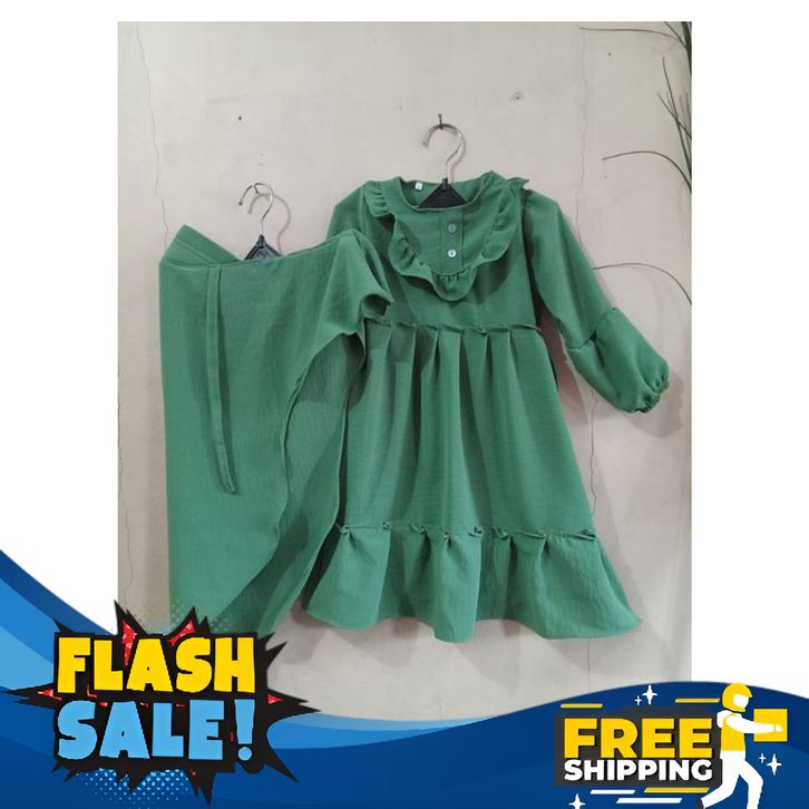 [Mall] BAJU GAMIS ANAK CRINKLE SET HIJAB MURAH TERBARU USIA 2-9 TAHUN