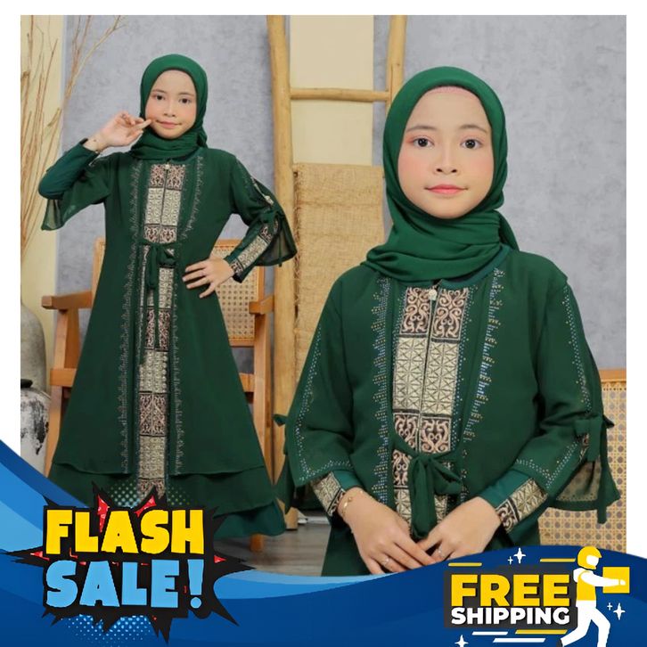 [Mall] GAMIS ABAYA TURKI ANAK ZIP DEPAN TALI WARNA IBU DAN ANAK