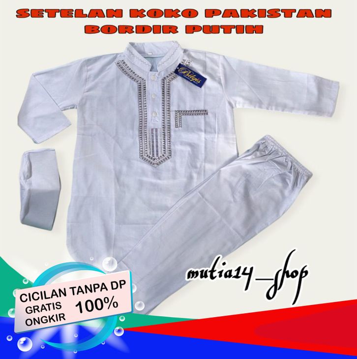 SALE SETELAN KOKO PUTIH PAKISTAN BORDIR TOYOBO ANAK LAKI LAKI LENGAN PANJANG 1-12 TAHUN