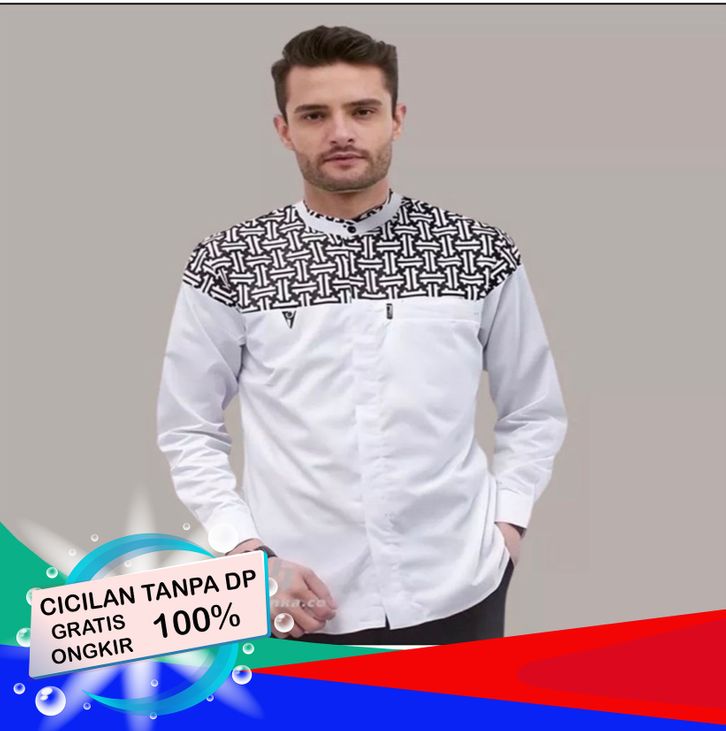 BIG SALE BAJU KOKO DEWASA MOTIF FALCON KOMBINASI BATIK PUTIH TERMURAH