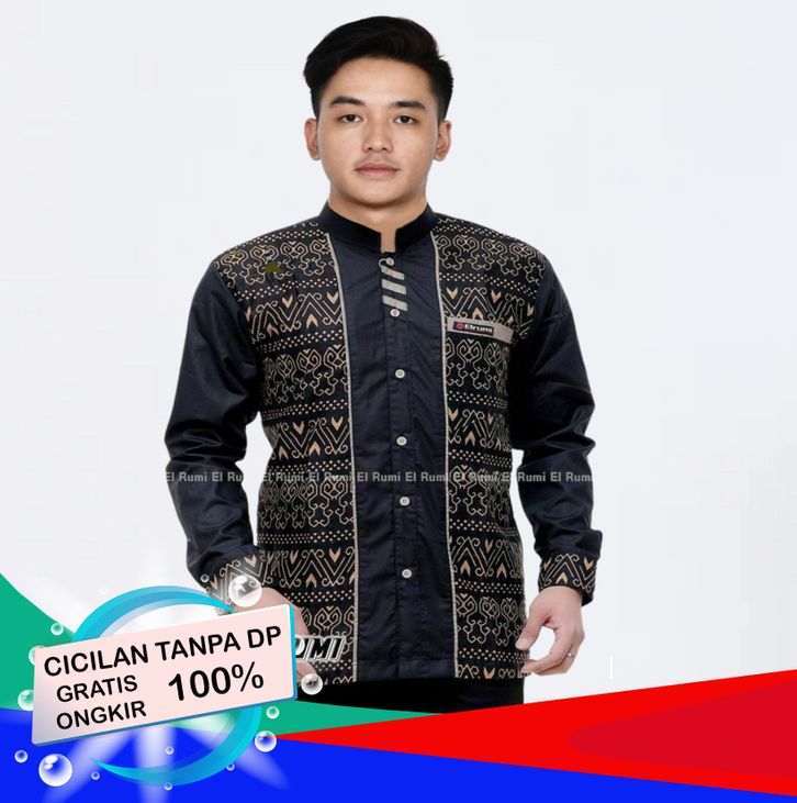 BIG SALE BAJU KOKO PRIA DEWASA LENGAN PANJANG WARNA HITAM KOMBINASI BATIK MOTIF JARILIST