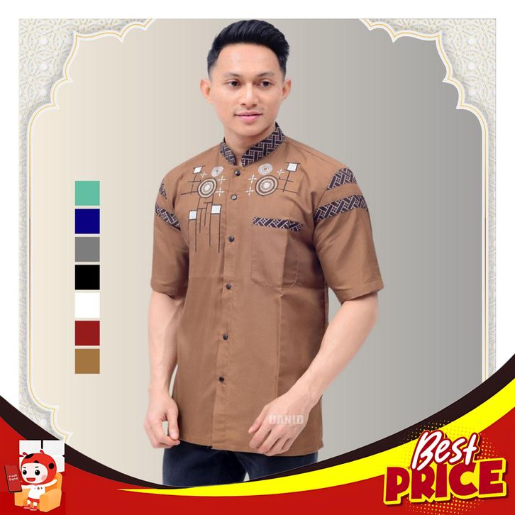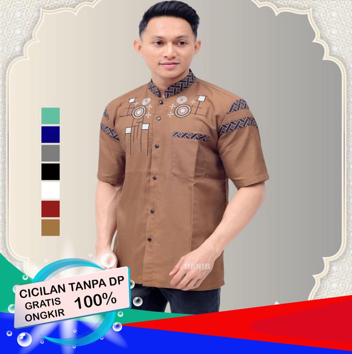 Baju Koko Pria Lengan Pendek Kombinasi Batik Motif Bordir 4.9 162 penilaian