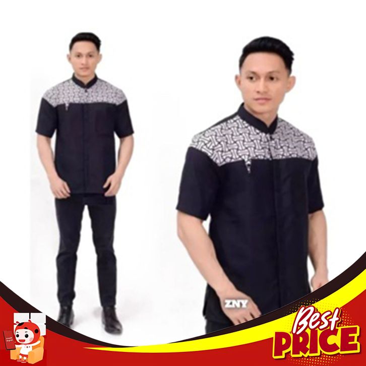 BIG SALE BAJU KOKO PRIA DEWASA LENGAN PENDEK KOMBINASI BATIK FALKON TERKINI TERLARIS 2024