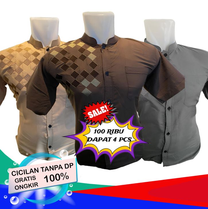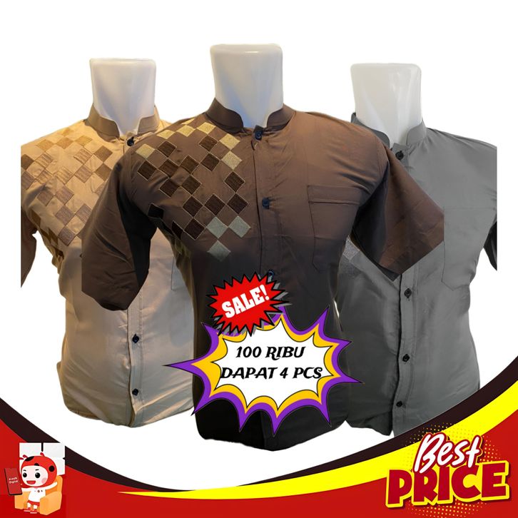BIG SALE AKAALFATIH BAJU KOKO LENGAN PENDEK KATUN BORDIR KOKO DEWASA