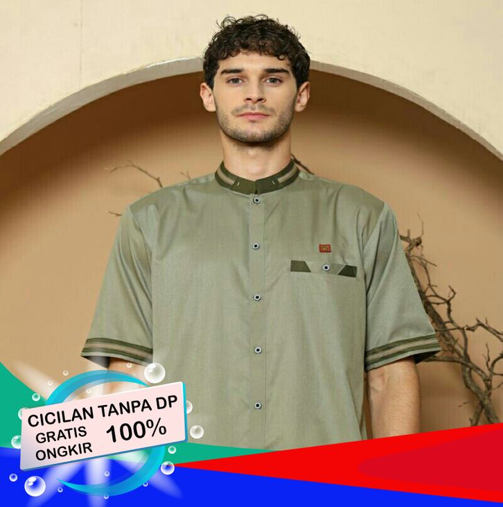 BIG SALE ADRIKNI BAJU KOKO PRIA DEWASA KEMEJA PRIA LENGAN PENDEK WARNA SAGE