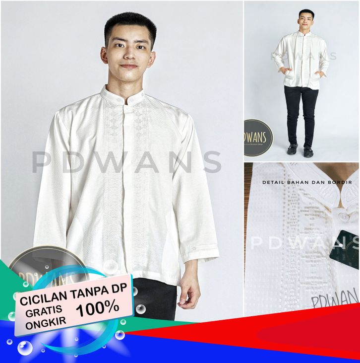 BIG SALE BAJU KOKO MUSLIM DEWASA LENGAN PANJANG KEMEJA KOKO BORDIR PUTIH TULANG PDWANS - RDPJG02