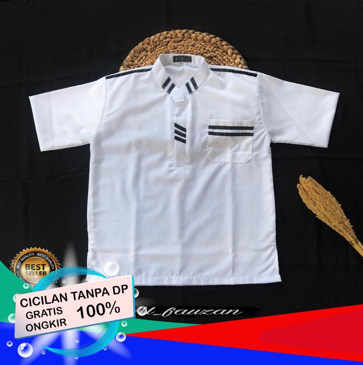 SALE BAJU KOKO ANAK TURKI PUTIH UMUR 8-15 TAHUN LENGAN PENDEK