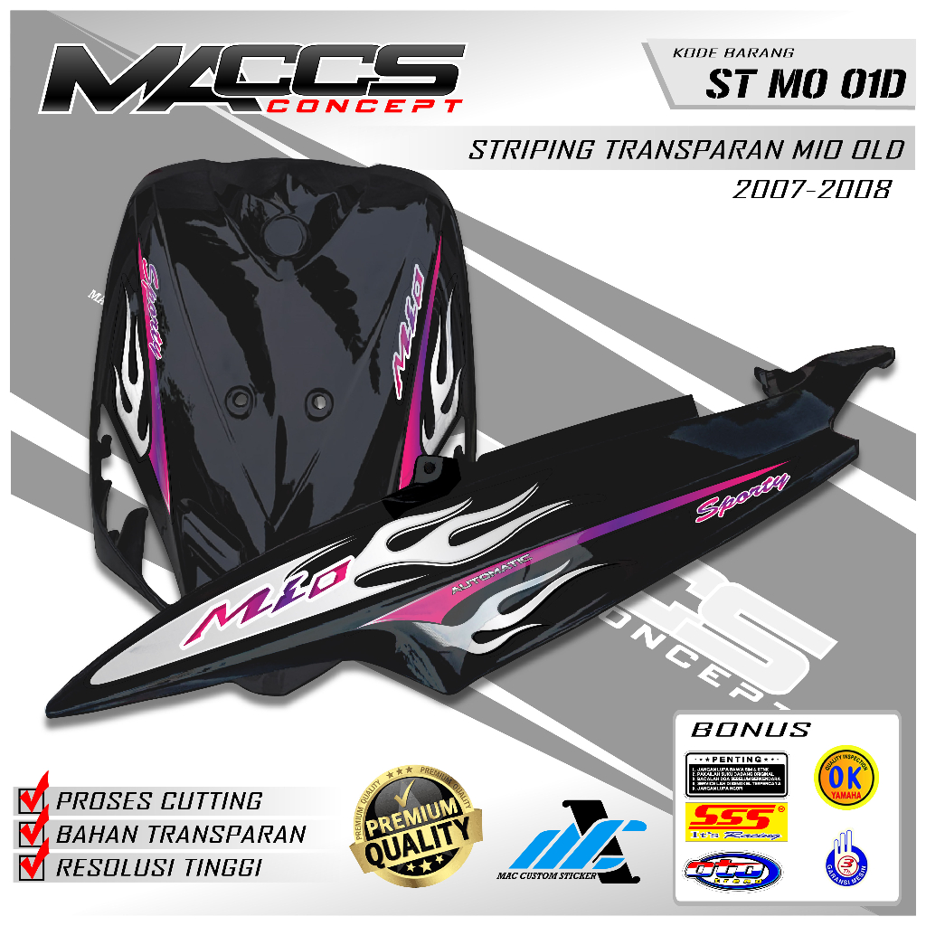 STIKER STRIPING TRANSPARAN MIO SPORTY, NEW DESIGN API HOT WHEELS MIO OLD BEST SELLER, KODE ST MO 01