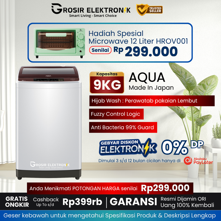 GRATIS ONGKIR - Mesin Cuci 1 Tabung 9 KG Hijab [ AQUA JAPAN AQW-8DDH 7KG - 10.5KG ] - mesin cuci aqua 9kg - STGE - TL1