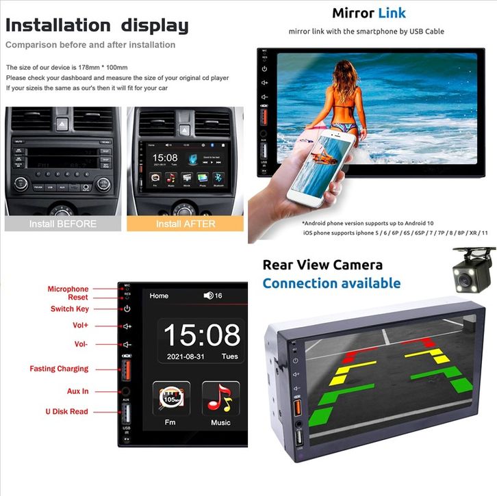 Carstorm Single 1DIN 7 Inch Car Stereo Radio FM BT USB Layar Sentuh Bluetooth MP5 Player 7" Layar Sentuh Radio Mobil