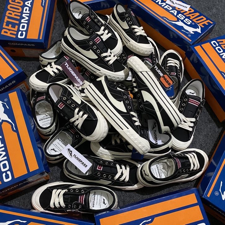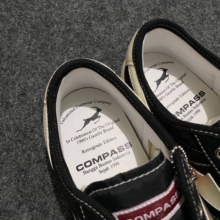 Sepatu Compass Retrograde Black White Low Sepatu Sneakers Cewek Pria Unisex Original 100% Kasual Hangout Ukuran 35-44