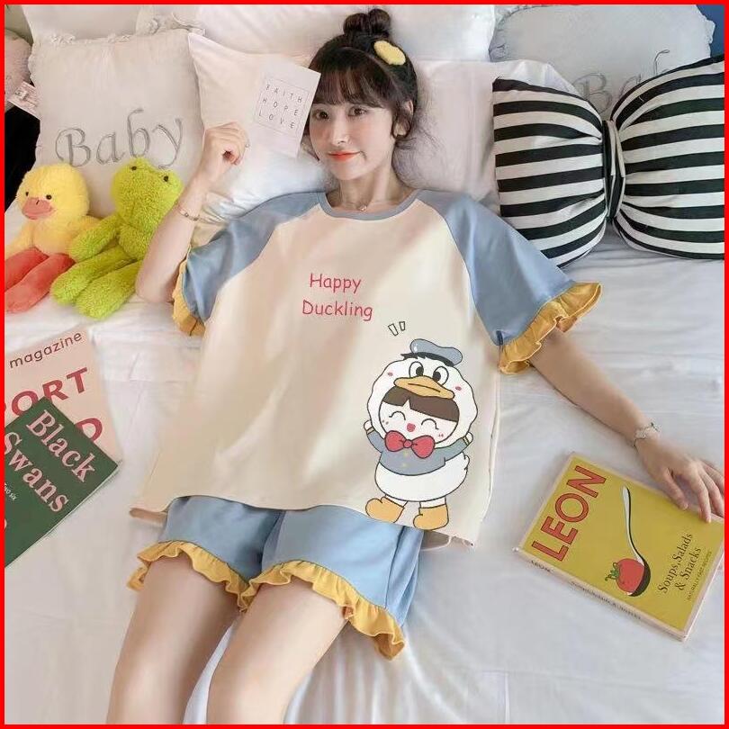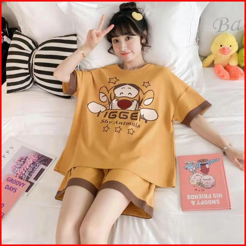 Stelan Piyama Baju Tidur Wanita Rumahan Katun Lembut Motif Kartun Lucu Stw