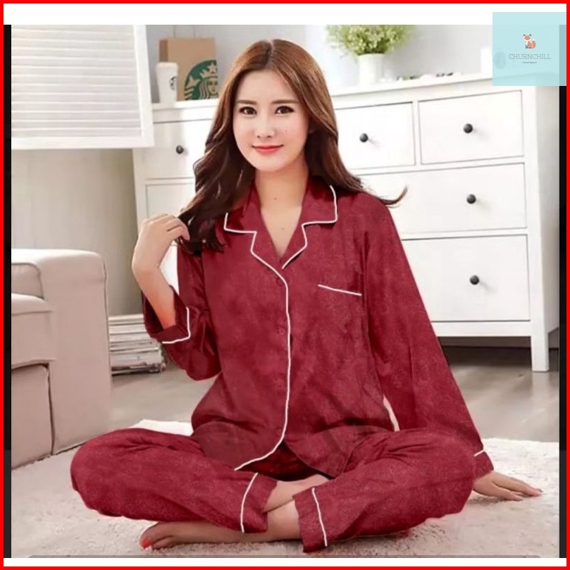 Cc Baju Tidur Piyama Wanita Setelan Lengan Celana Panjang Embos
