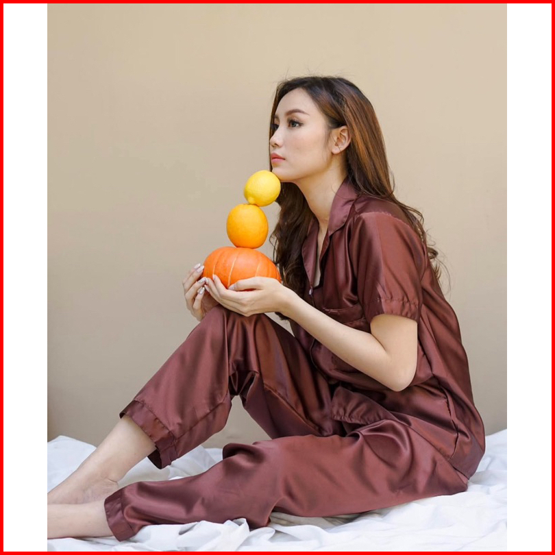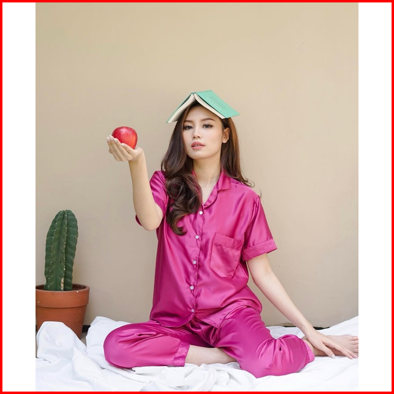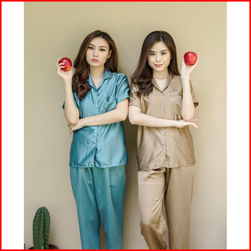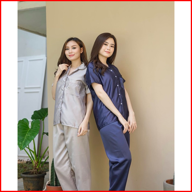 Piyama Paket Longpants Setelan - Satin - Baju Tidur - Piyama Wanita - Pajamas - Celana Panjang