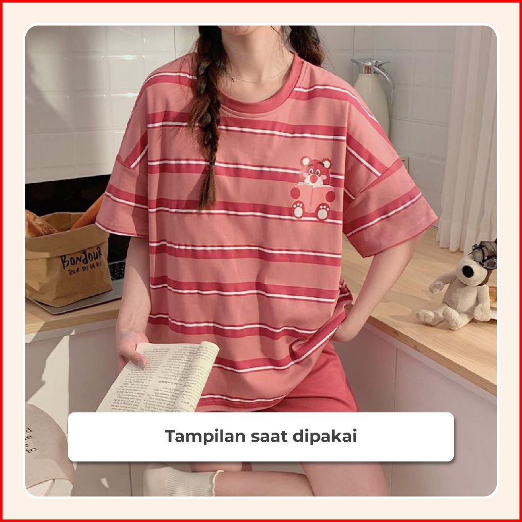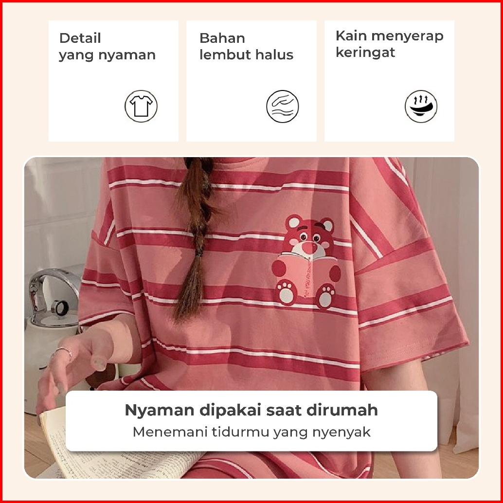 5xl Pakaian Wanita 3xlbaju Tidur Wanita Piyama Lengan Pendek Motif Kartun Fit