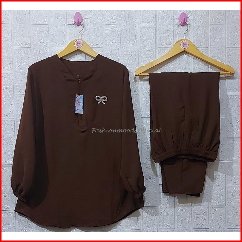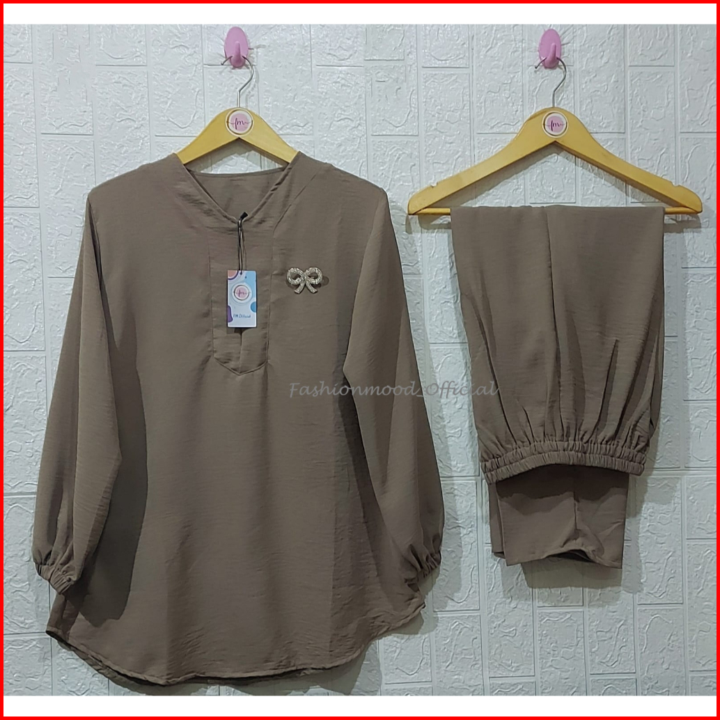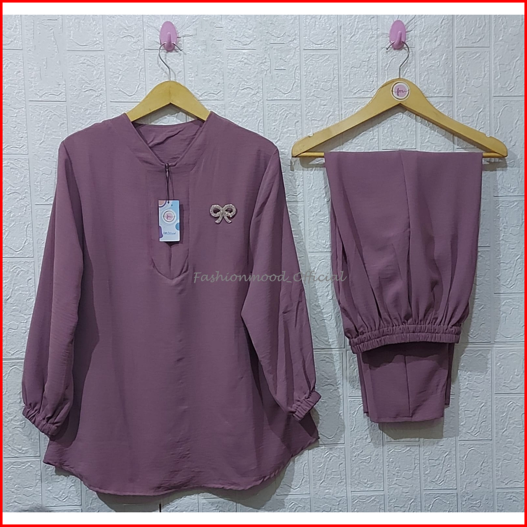 One Set Rayon Crinkle Airflow Setelan Setelan Rayon Crinkle Airflow Dress Rayon Setelan Rayon Busui Friendly Piyama Prem