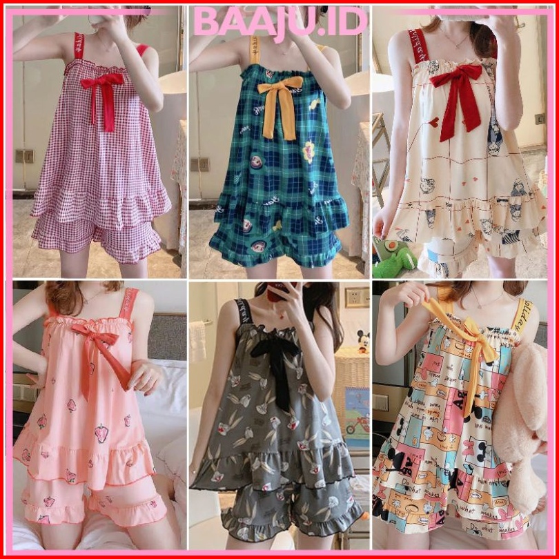 Baaju.id Baju Tidur Piyama Import Wanita Desain Korea Motif Kartun Baju Tidur Lucu Kr1003 - 4 Size