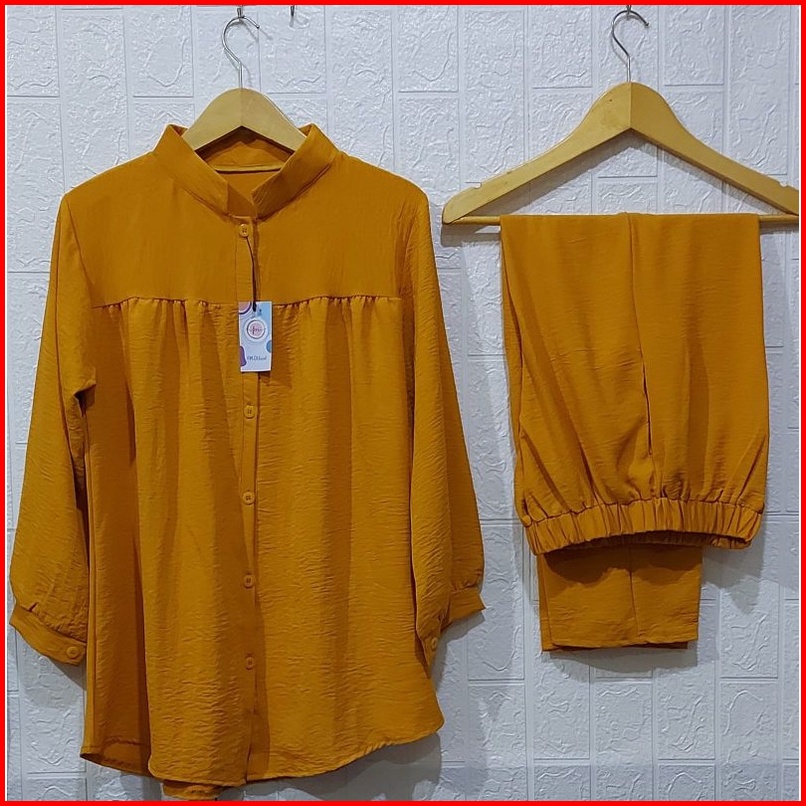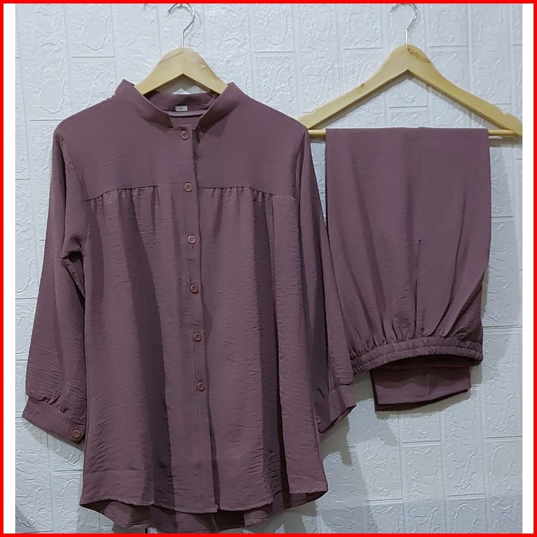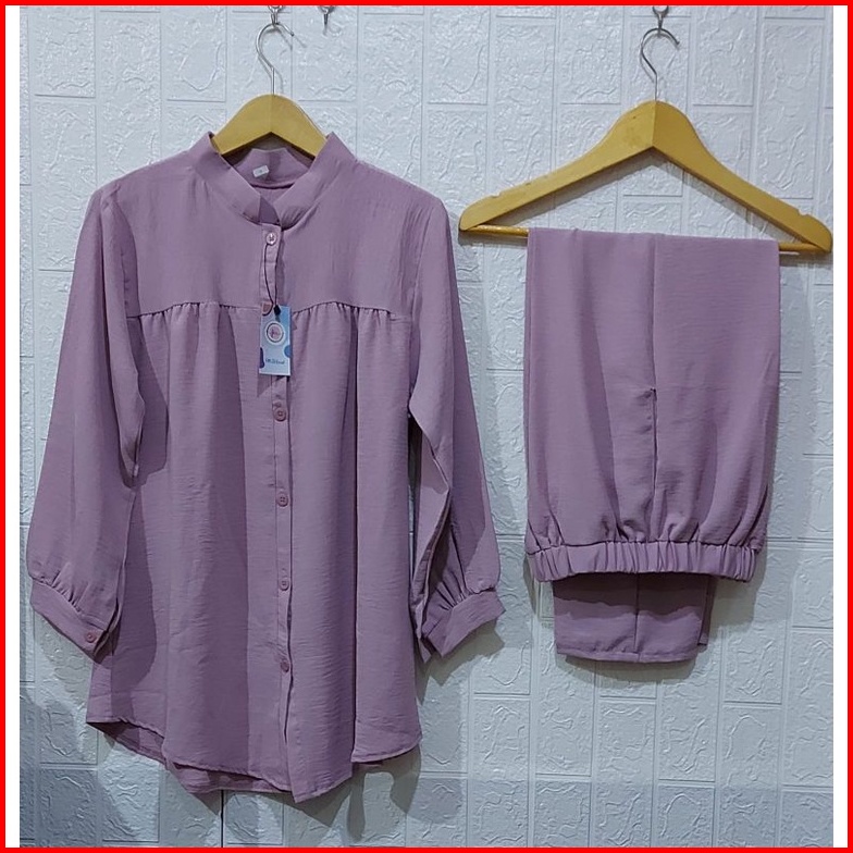 One Set Rayon Crinkle Airflow Setelan Setelan Rayon Crinkle Airflow Dress Rayon Setelan Rayon Busui Friendly Piyama Prem