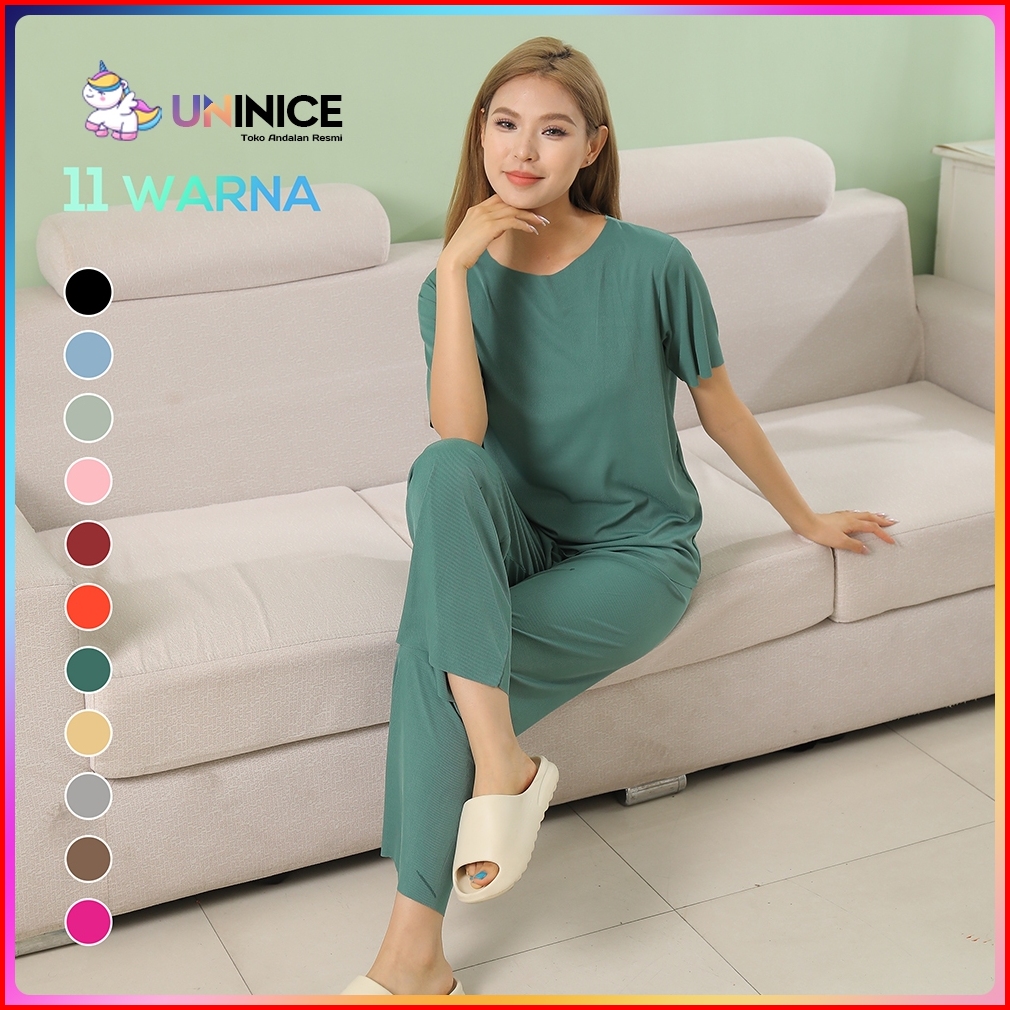 Uninice Set Piyama Wanita Warna Polos Ukuran Besar Baju Rumah Nyaman Dan Bernapas