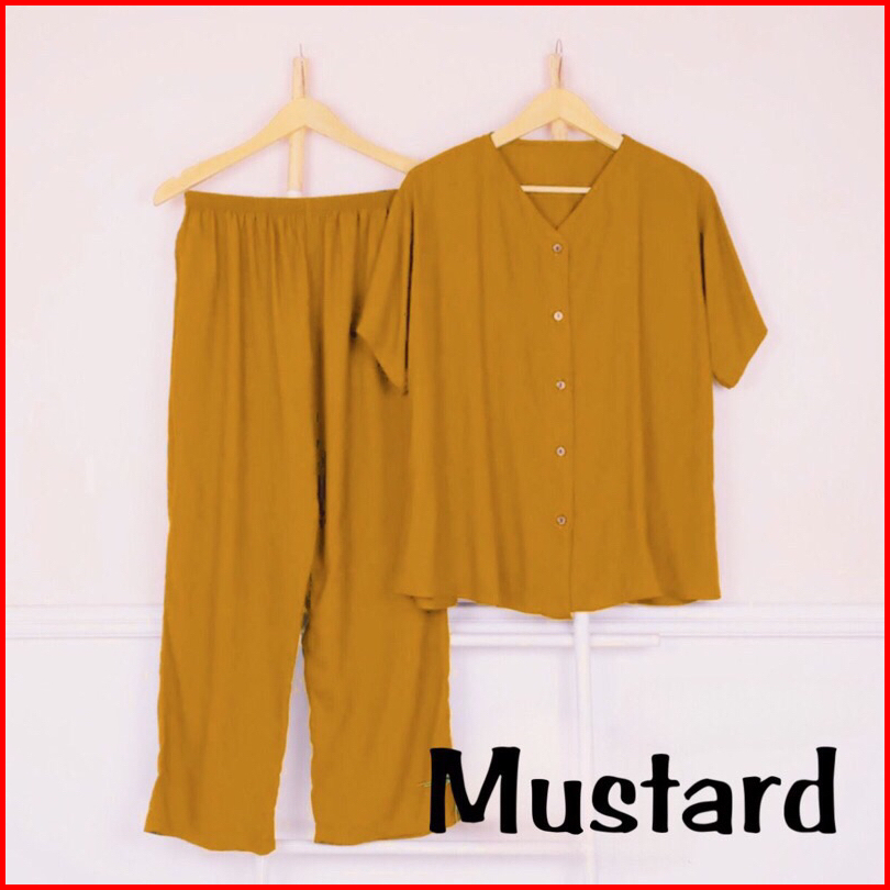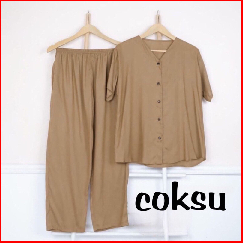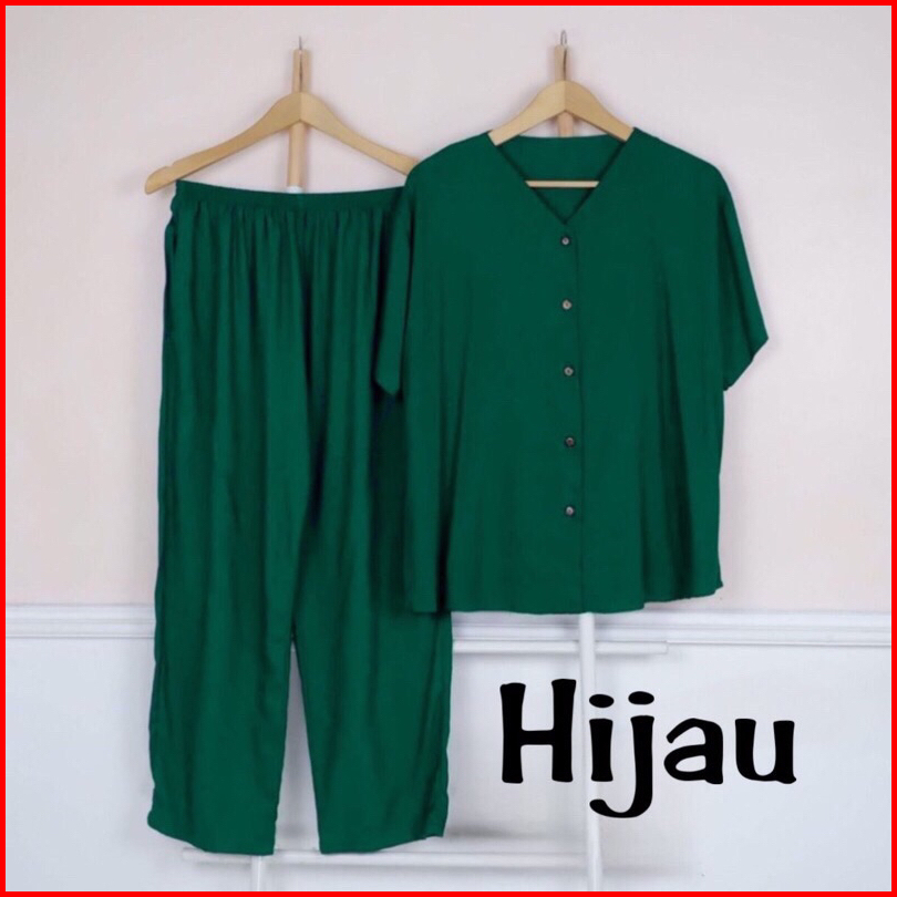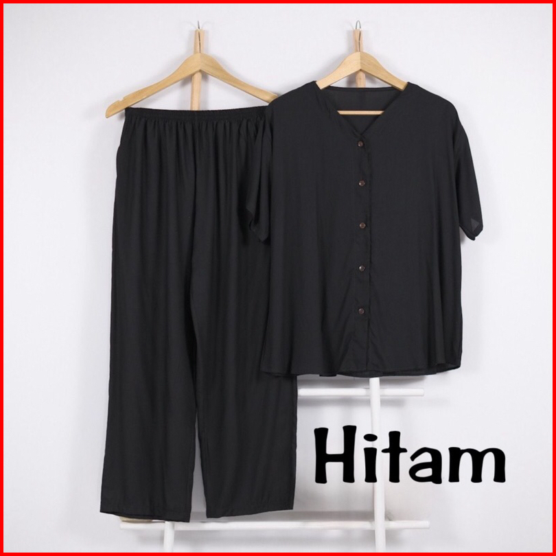 Cozy V Piyama One Set Polos Katun Silk Premium 2l 3l 4l Lengan Pendek Celana Panjang Piyama
