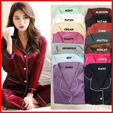 Bj-piyama Pp Satin Velvet - Satin Polos Wanita Dewasa Murah - Lengan Panjang
