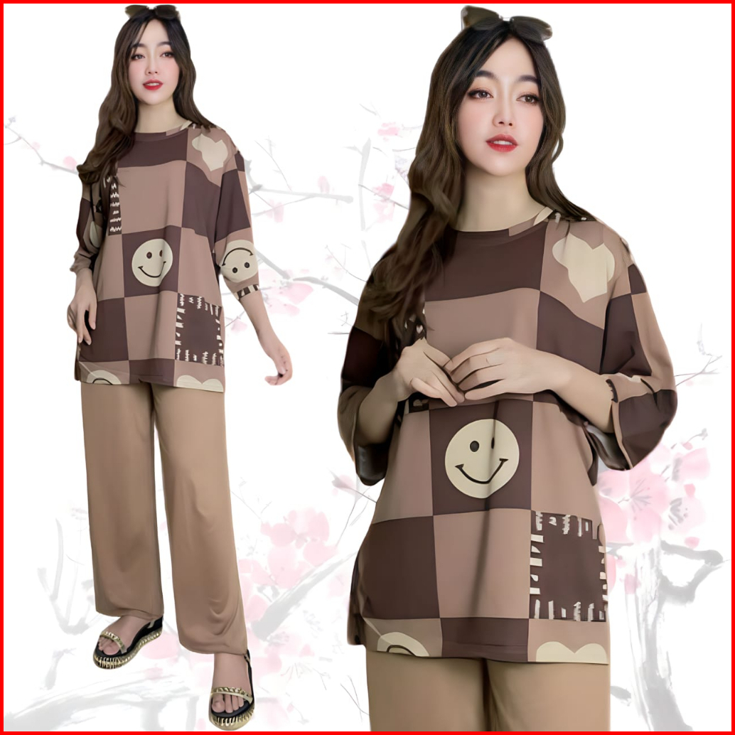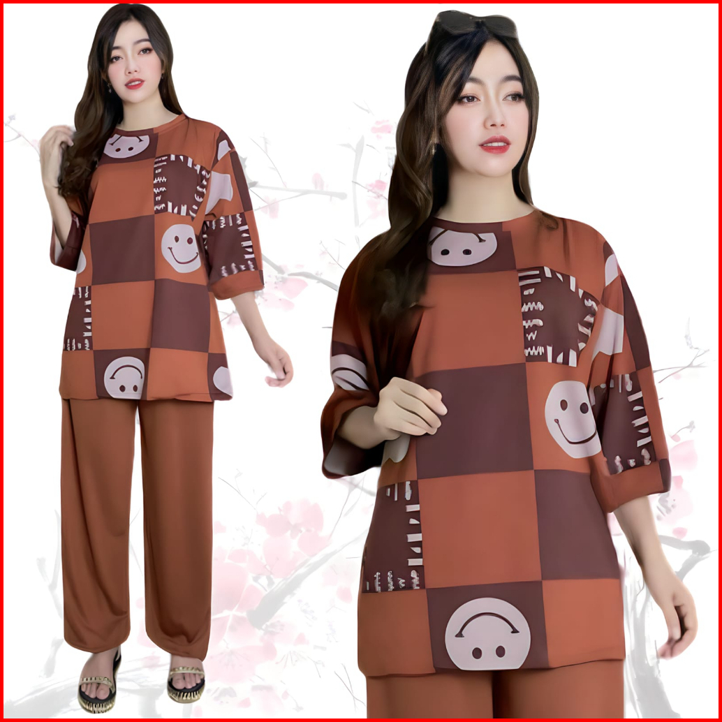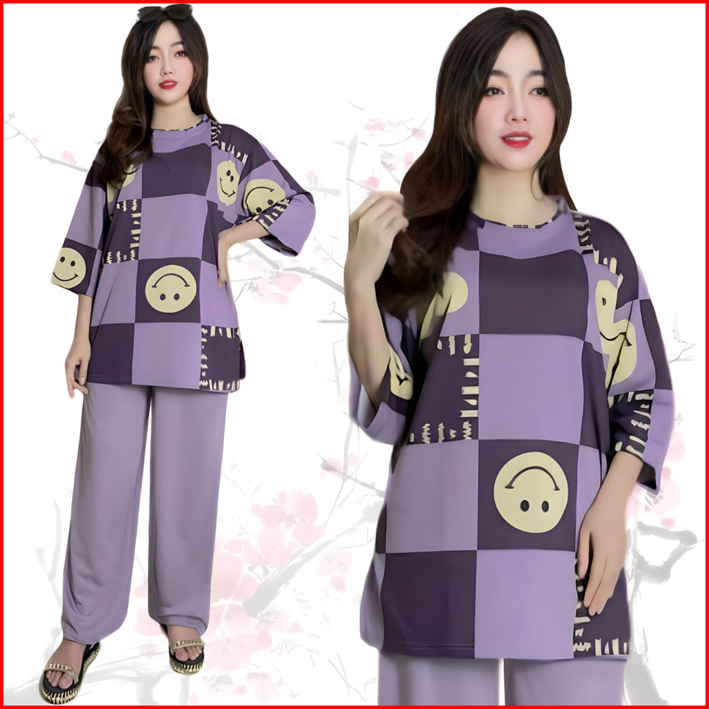 Suraiya Ld 120 Setelan Wanita Celana Dan Atasan Oversize Wanita Baju Kantong Karet Kaos Dewasa Motif Panjang
