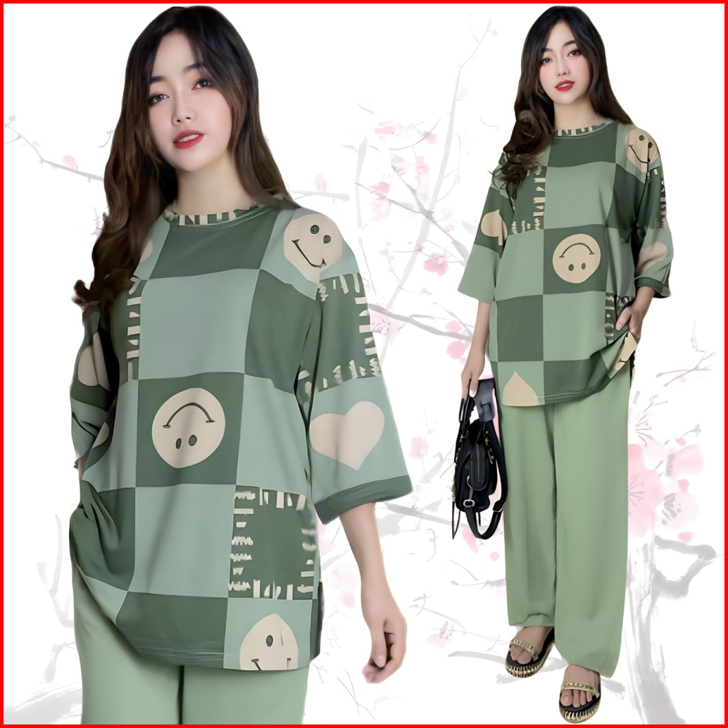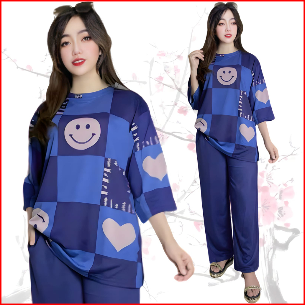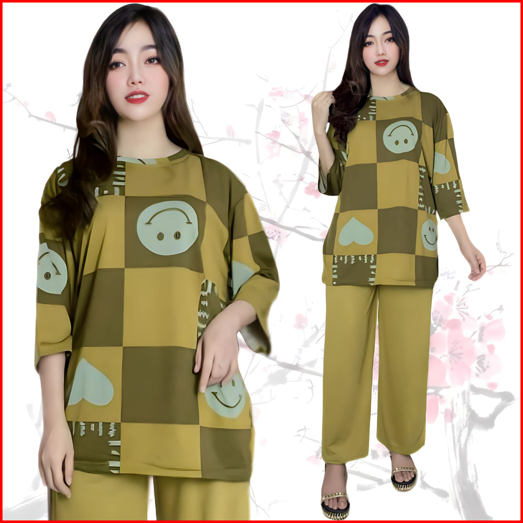 Suraiya Ld 120 Setelan Wanita Celana Dan Atasan Oversize Wanita Baju Kantong Karet Kaos Dewasa Motif Panjang